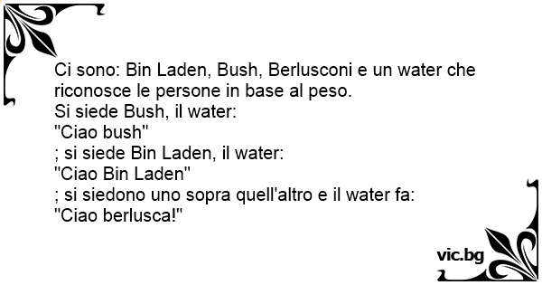 Ci sono: Bin Laden, Bush, Berlusconi e un water che riconosce le persone in base al peso.