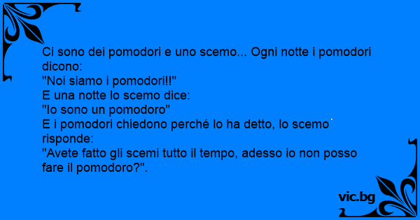 E i pomodori chiedono perché lo ha detto, lo scemo risponde: