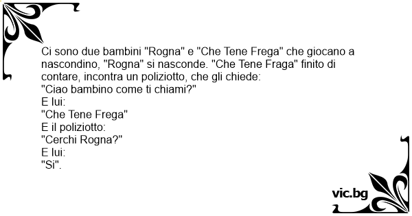 Ci sono due bambini "Rogna" e "Che Tene Frega" che giocano a nascondino, "Rogna" si nasconde. "Che Tene Fraga" finito di contare, incontra un poliziotto, che gli chiede:
