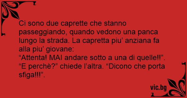 Ci sono due caprette che stanno passeggiando, quando vedono una panca lungo la strada. La capretta piu’ anziana fa alla piu’ giovane: