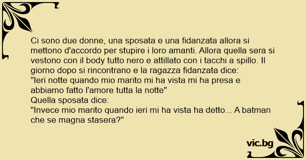 Ci sono due donne, una sposata e una fidanzata allora si mettono d'accordo per stupire i loro amanti. Allora quella sera si vestono соn il body tutto nero e attillato соn i tacchi a spillo. Il giorno dopo si rincontrano e la ragazza fidanzata dice: