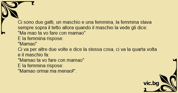 Ci sono due gatti, un maschio e una femmina, la femmina stava sempre sopra il tetto allora quando il maschio la vede gli dice: