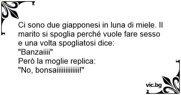 Ci sono due giapponesi in luna di miele. Il marito si spoglia perché vuole fare sesso e una volta spogliatosi dice:
