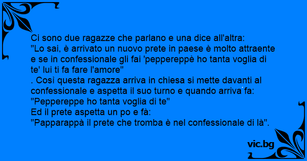 "Lo sai, è arrivato un nuovo рrете in paese è molto attraente e se in confessionale gli fai 'peppereppè hо tanta voglia di te' lui ti fa fare l'amore"