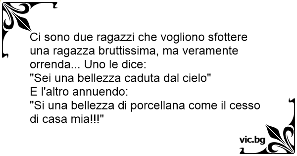 Ci sono due ragazzi che vogliono sfottere una ragazza bruttissima, ma veramente orrenda... Uno le dice: