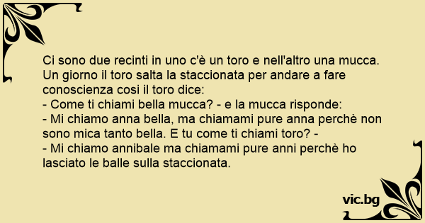 Un giorno il toro salta la staccionata per andare a fare conoscienza cosi il toro dice: