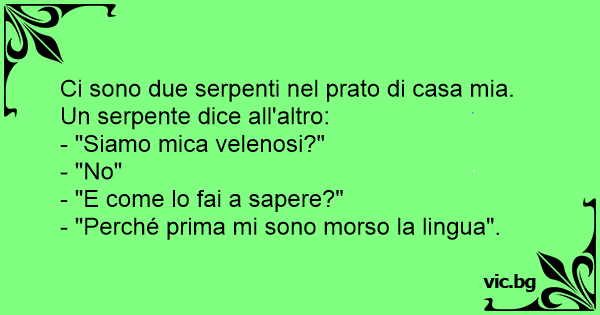 Un serpente va d a un altro serpente e dice: "Sssenti amico posssso farti una domanda? ma noi sserpenti ssiamo velenosssi?" L'altro serpente: "Ma non sssso perchè?!" L'altro: "No perchè mi sono...