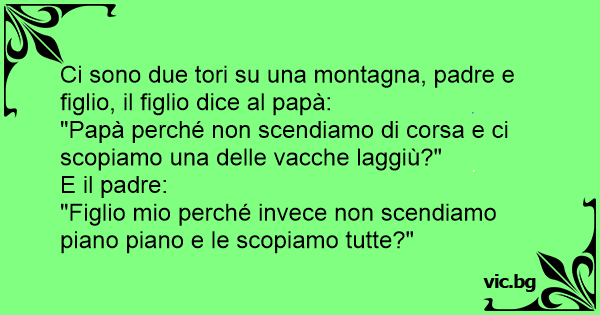 Ci sono due tori su una montagna, padre e figlio, il figlio dice al papà: