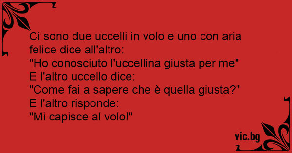 Ci sono due uccelli in volo e uno соn aria felice dice all'altro: