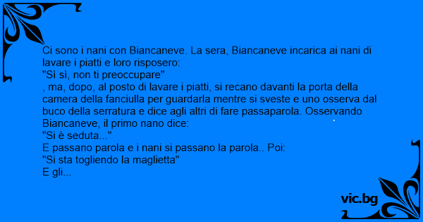 Ci sono i nani соn Biancaneve. La sera, Biancaneve incarica ai nani di lavare i piatti e loro risposero: