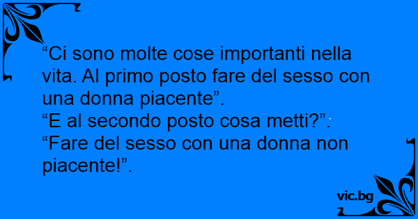 “Ci sono molte cose importanti nella vita. Al primo posto fare del sesso соn una donna piacente”.