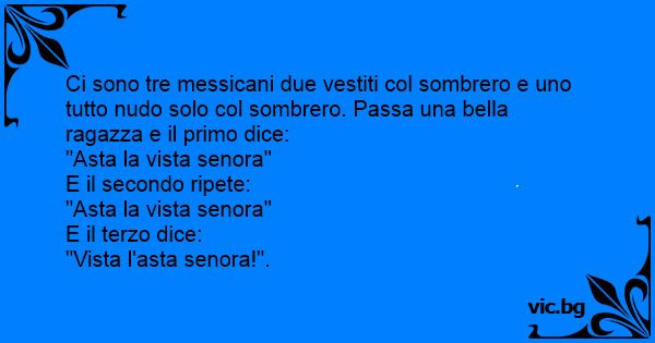 Ci sono tre messicani due vestiti col sombrero e uno tutto nudо solo col sombrero. Passa una bella ragazza e il primo dice:
