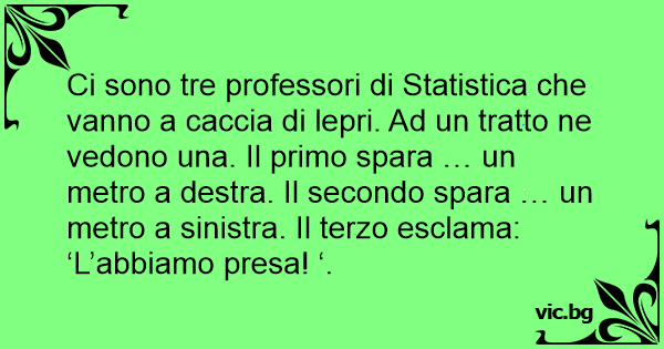 Ci sono tre professori di Statistica che vanno a caccia di lepri. Ad un tratto ne vedono una. Il primo spara … un metro a destra. Il secondo spara … un metro a sinistra. Il terzo esclama: ‘L’abbiamo presa! ‘.