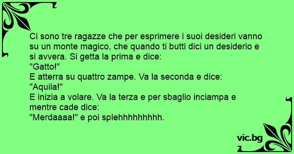 Ci sono tre ragazze che per esprimere i suoi desideri vanno su un monte magico, che quando ti butti dici un desiderio e si avvera. Si getta la prima e dice: