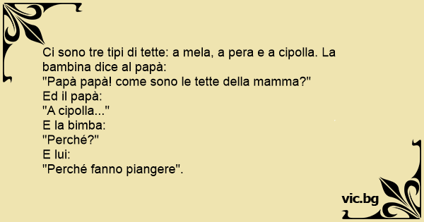 Ci sono tre tipi di тетте: a mela, a pera e a cipolla. La bambina dice al papà: