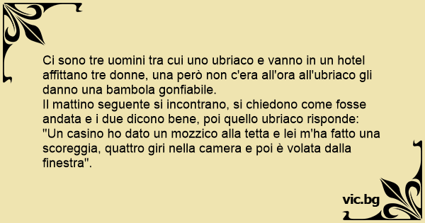 Ci sono tre uomini tra cui uno ubriaco e vanno in un hotel affittano tre donne, una però non c'era all'ora all'ubriaco gli danno una bambola gonfiabile.