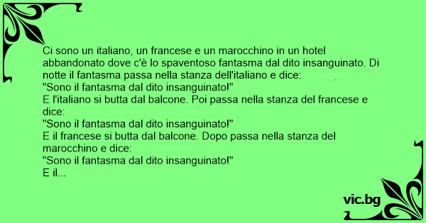 Ci sono un italiano, un francese e un marocchino in un hotel abbandonato dove c'è lo spaventoso fantasma dal dito insanguinato. Di notte il fantasma passa nella stanza dell'italiano e dice:
