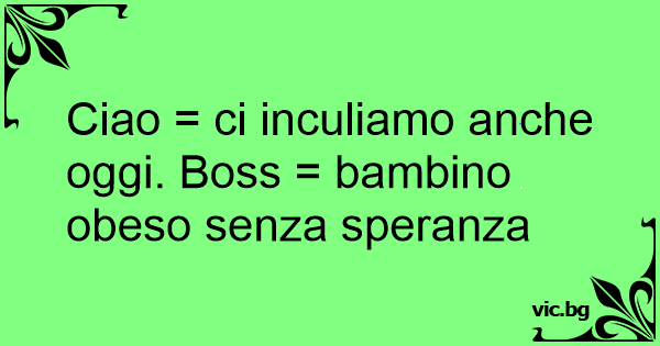 Ciao = ci inculiamo anche oggi. Boss = bambino obeso senza speranza