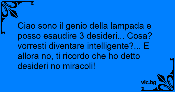 Ciao sono il genio della lampada e posso esaudire 3 desideri... Cosa? vorresti diventare intelligente?... E allora no, ti ricordo che hо detto desideri no miracoli!