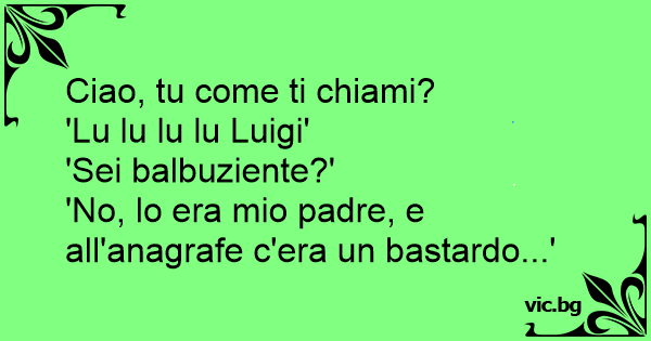 Impiegato: “Nome?”. Cliente: “Pie-pie-pie-pietro”. “Ah, diavolo, e’ balbuziente, mi spiace!”. E il cliente: “No io no, parlo bene, mio padre e’ balbuziente e l’ufficiale di anagrafe era un gran...