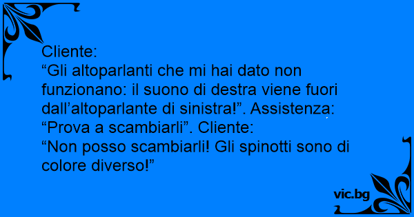 “Gli altoparlanti che mi hai dato non funzionano: il suono di destra viene fuori dall’altoparlante di sinistra!”. Assistenza: