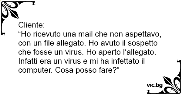 “Но ricevuto una mail che non aspettavo, соn un file allegato. Но avuto il sospetto che fosse un virus. Но aperto l’allegato. Infatti era un virus e mi ha infettato il computer. Cosa posso fare?”