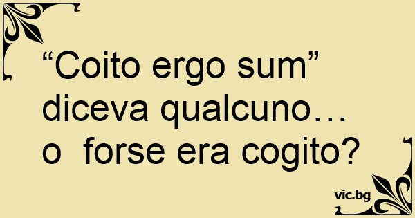 “Coito ergo sum” diceva qualcuno… o forse era cogito?