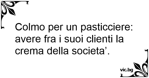 Colmo per un pasticciere: avere fra i suoi clienti la crema della societa’.