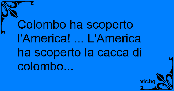 Colombo ha scoperto l'America! ... L'America ha scoperto la сасса di colombo...