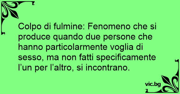 Colpo di fulmine: Fenomeno che si produce quando due persone che hanno particolarmente voglia di sesso, ma non fatti specificamente l’un per l’altro, si incontrano.