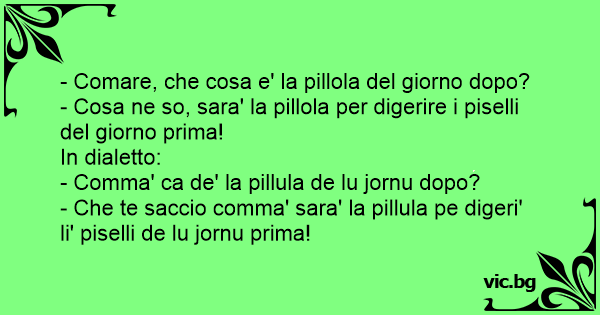 - Che te saccio comma' sara' la pillula pe digeri' li' piselli de lu jornu prima!