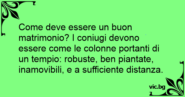 Come deve essere un buon matrimonio? I coniugi devono essere come le colonne portanti di un tempio: robuste, ben piantate, inamovibili, e a sufficiente distanza.