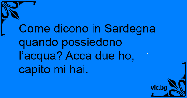 Come dicono in Sardegna quando possiedono l’acqua? Acca due hо, capito mi hai.