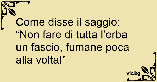 “Non fare di tutta l’erba un fascio, fumane poca alla volta!”