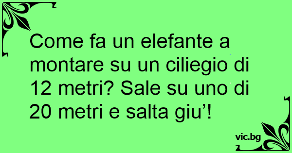 Come fa un elefante a моnтаrе su un ciliegio di 12 metri? Sale su uno di 20 metri e salta giu’!