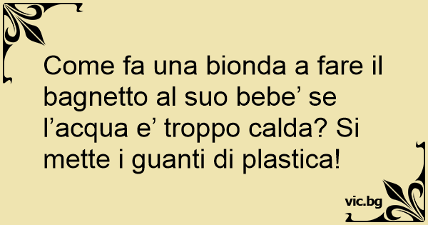 Come fa una bionda a fare il bagnetto al suo bebe’ se l’acqua e’ troppo calda? Si mette i guanti di plastica!