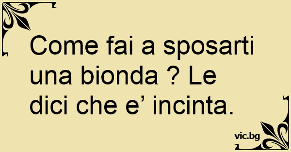 Come fai a sposarti una bionda ? Le dici che e’ incinta.