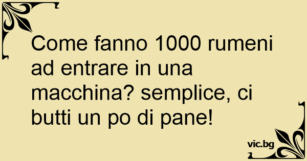 Come fanno 1000 rumeni ad entrare in una macchina? semplice, ci butti un po di pane!