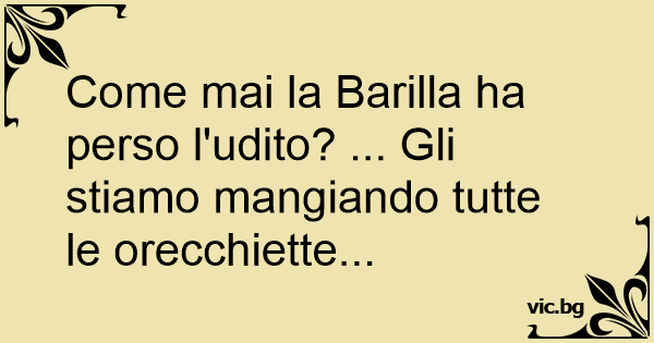 Come mai la Barilla ha perso l'udito? ... Gli stiamo mangiando tutte le orecchiette... 0 0 0 Barzellette