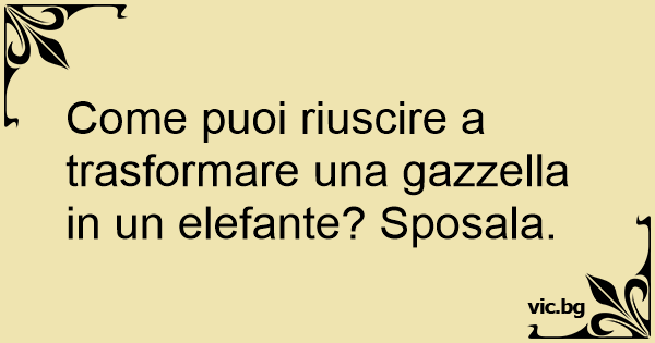 Come puoi riuscire a trasformare una gazzella in un elefante? Sposala.