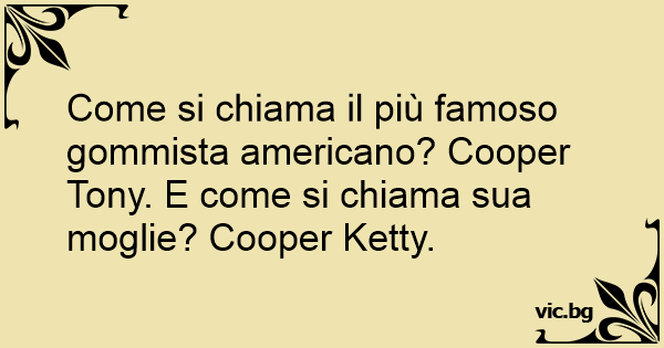 Come si chiama il più famoso gommista americano? Cooper Tony. E come si chiama sua moglie? Cooper Ketty.