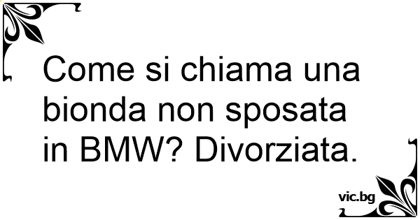 Come si chiama una bionda non sposata in BMW? Divorziata.