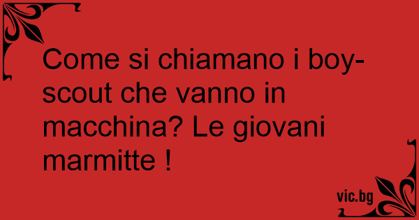 Come si chiamano i boy-scout che vanno in macchina? Le giovani marmitte !