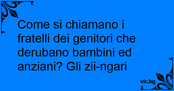 Come si chiamano i fratelli dei genitori che derubano bambini ed anziani? Gli zii-ngari
