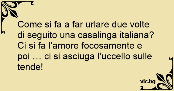 Come si fa a far urlare due volte di seguito una casalinga italiana? Ci si fa l’amore focosamente e poi … ci si asciuga l’uссеllо sulle tende!