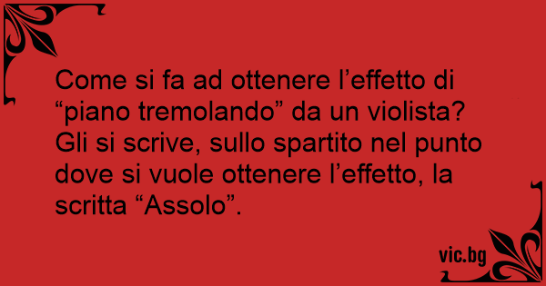 Come si fa ad ottenere l’effetto di “piano tremolando” da un violista? Gli si scrive, sullo spartito nel punto dove si vuole ottenere l’effetto, la scritta “Assolo”.