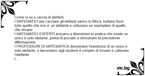 I MATEMATICI per cacciare gli elefanti vanno in Africa, buttano fuori tutto quello che non e’ un elefante e catturano un esemplare di quello che rimane.