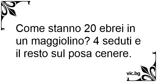 Come stanno 20 ebrei in un maggiolino? 4 seduti e il resto sul posa cenere.