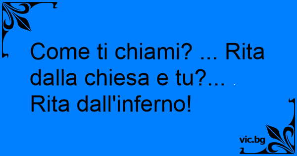 Come ti chiami? ... Rita dalla chiesa e tu?... Rita dall'inferno!