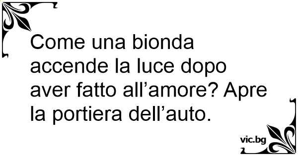 Come una bionda accende la luce dopo aver fatto all’amore? Apre la portiera dell’auto.